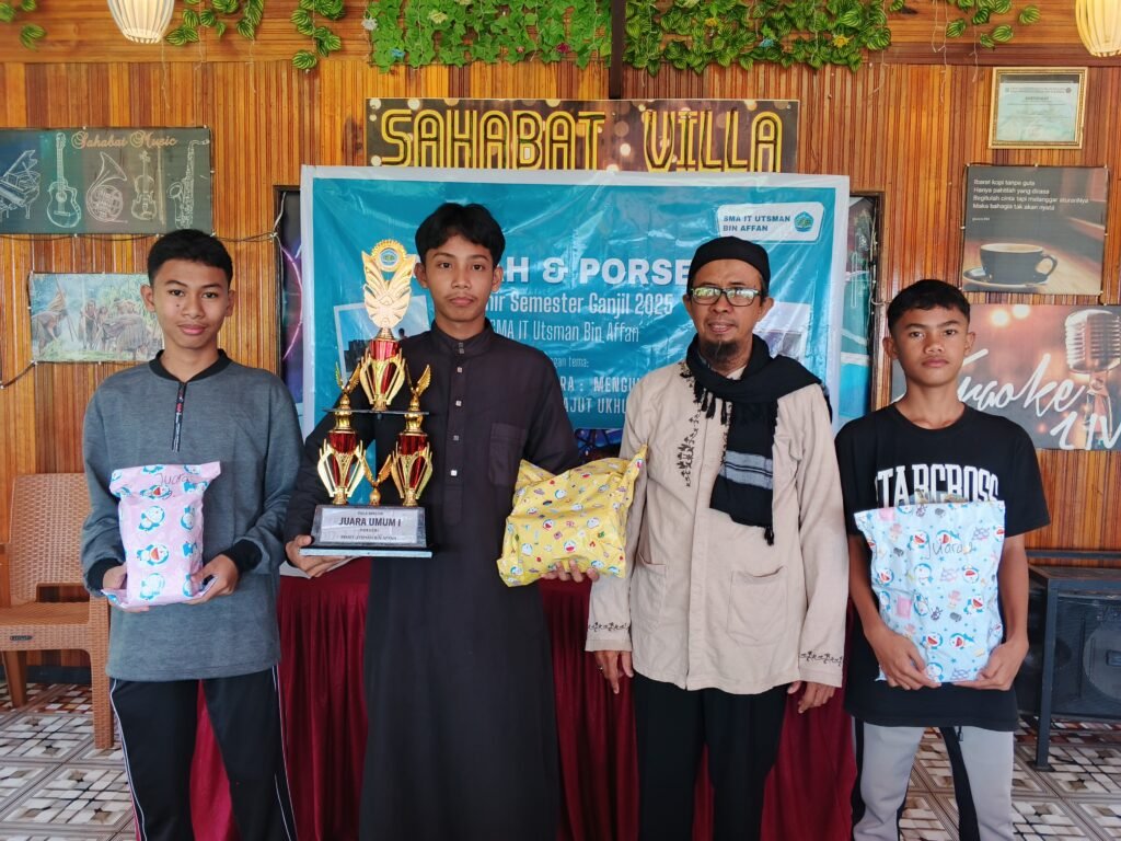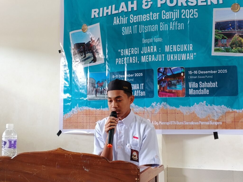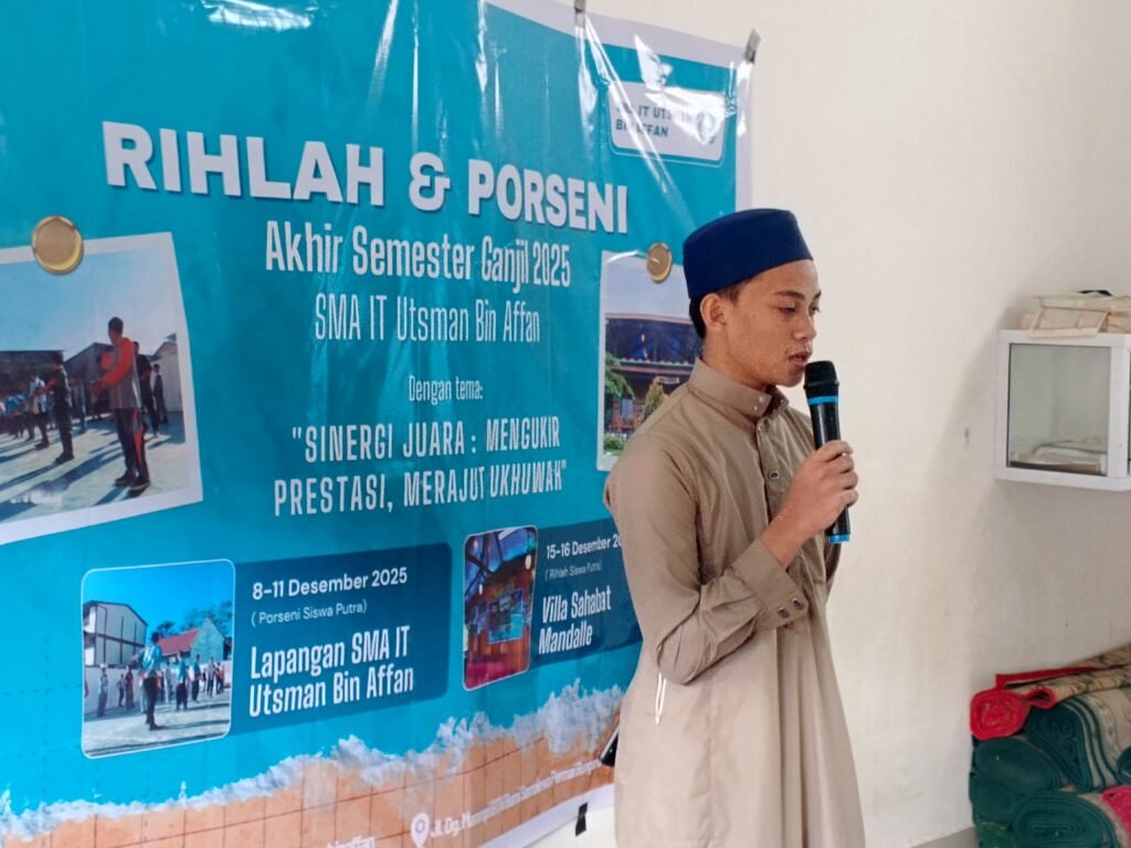 Setelah melwati proses asesmen sumatif akhir semester (SAS) untuk semester ganjil 2025-2026, para siswa SMA IT Utsman Bin Affan menjalani rangkaian Porseni & Rihlah sebelum memasuki masa libur semster ganjil. Kedua kegiatan ini berjalan dari tanggal 8-11 Desember 2025 untuk Porseni dan 15-16 Desember 2025 untuk RIhlah yang bertempat di Villa Sahabat Mandalle, Pangkajene dan Kepulauan.